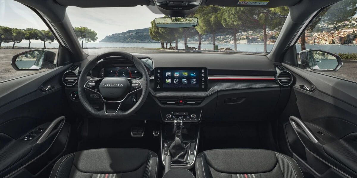 Schon auf den ersten Blick macht der Fabia 130 seine Absichten klar. Die markante schwarze Kühlergrillumrandung, der dynamische Spoiler und die 130er-Plakette auf den vorderen Kotflügeln setzen selbstbewusste Akzente. Abgedunkelte Voll-LED-Scheinwerfer verleihen einen schärferen Ausdruck, 18-Zoll-Räder "Libra" in exklusiver Smoke-Optik, rote Bremssättel und schwarze Spiegel unterstreichen den unverkennbar athletischen Look.